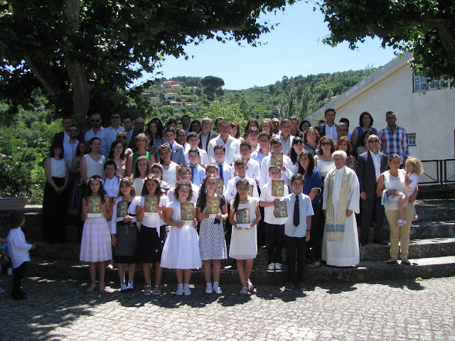 A 2ª foto é do grupo dos adolescentes em festa, com o pároco, as suas catequistas, os seus pais e seus padrinhos.